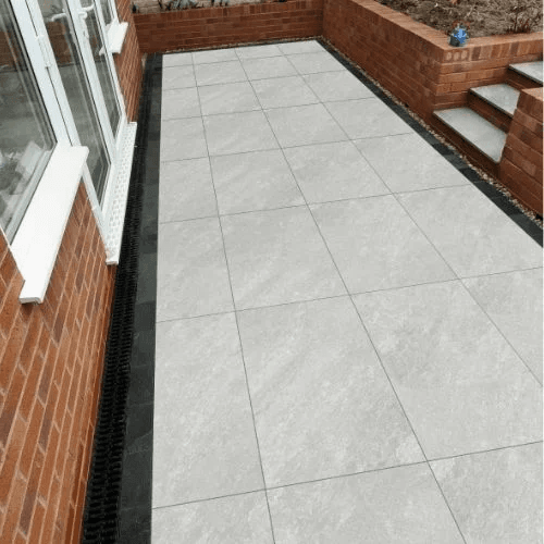 A beautiful new porcelain that has been designed to give a classic stone look to your garden whilst being low maintenance. Quartz White is shades of Ivory and cream with light mottling.